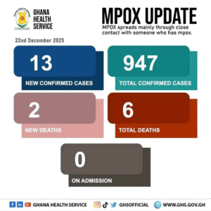 By: Jennifer Nerkie Kenney The Ghana Health Service has recorded 13 new cases of Mpox as of December 22, 2025,...